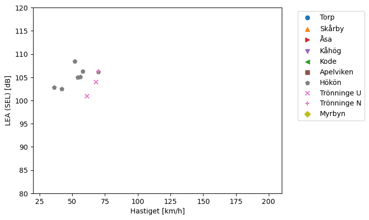| Plats | ID | Acc/Broms (A/B/P) | Längd | Axlar | Hastighet | LpEA | LvEA | LhEA |